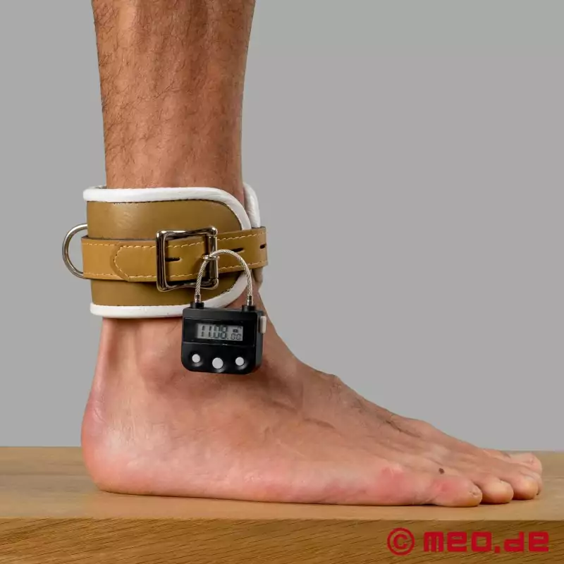 Z těchto kotníkových pout není úniku. Jsou uzamykatelná a lze je uzamknout časovým zámkem (od 1 minuty do 4 dnů).