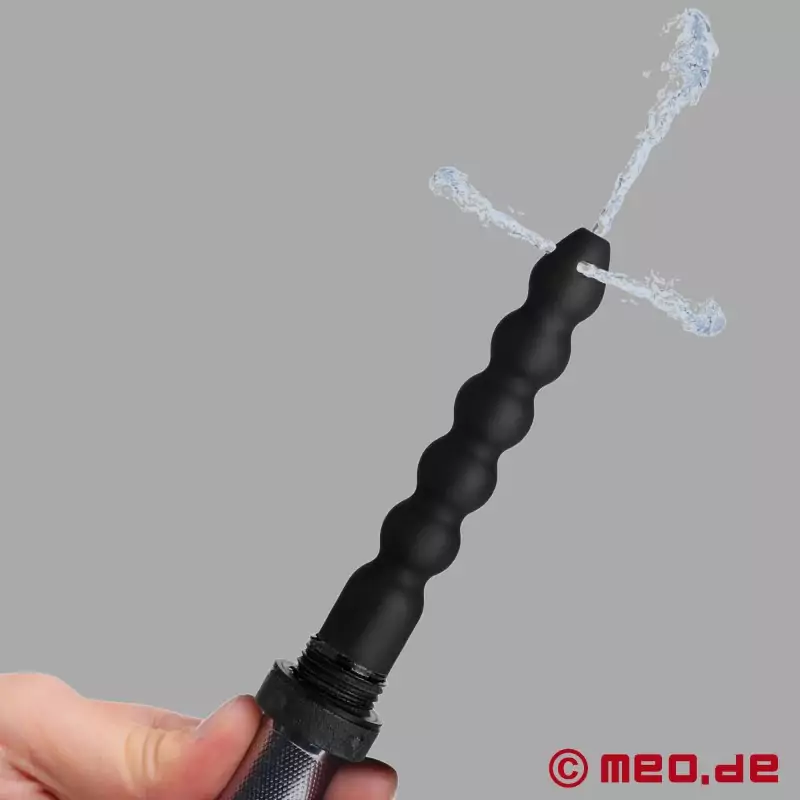 Sprchová hlavice je plně funkční a nabízí pět různých nastavení proudu pro běžné sprchování. V případě potřeby poskytuje diskrétně integrovaná silikonová tryska s několika otvory současně cílený a příjemný anální výplach. Měkký, neklouzavý materiál usnadňuje zavádění anální sprchy a umožňuje její pohodlné používání.