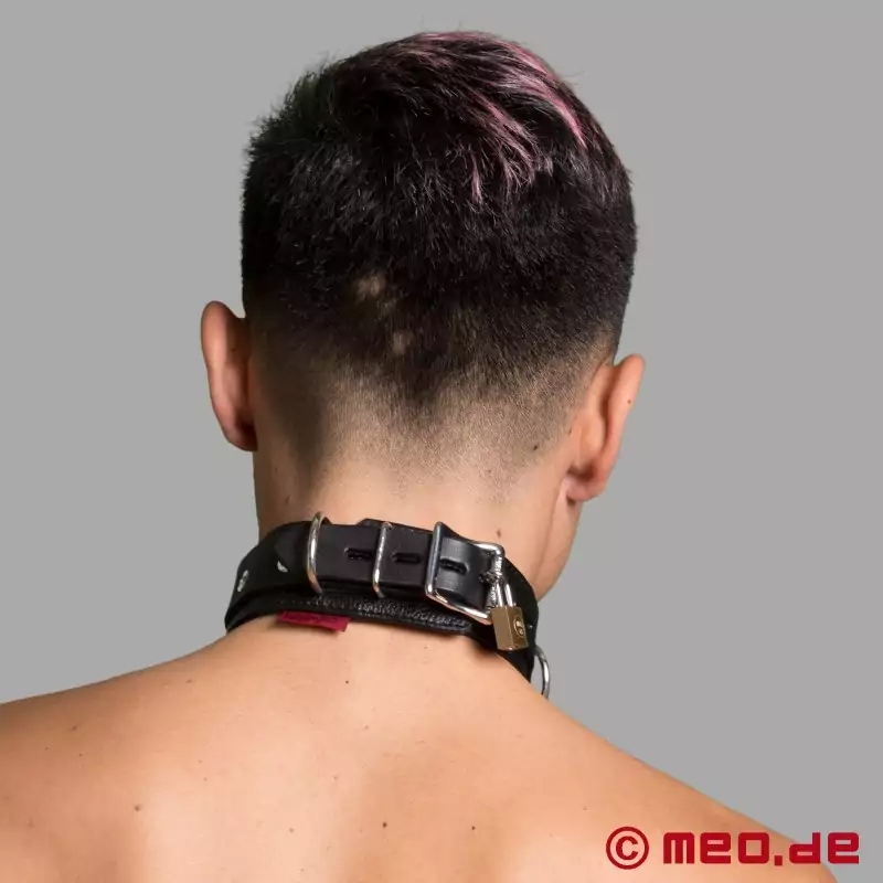 Hledáte uzamykatelný kožený obojek pro příští bondáž? Pak je pro vás MEO to pravé místo! Náš obojek BDSM je polstrovaný, má 3 D-kroužky a lze jej uzamknout visacím zámkem. Tento BDSM obojek od MEO je vyroben z vysoce kvalitní, šetrně vyčiněné hovězí kůže a je vyroben s maximální precizností řemeslného zpracování a je opravdovým mistrovským dílem.