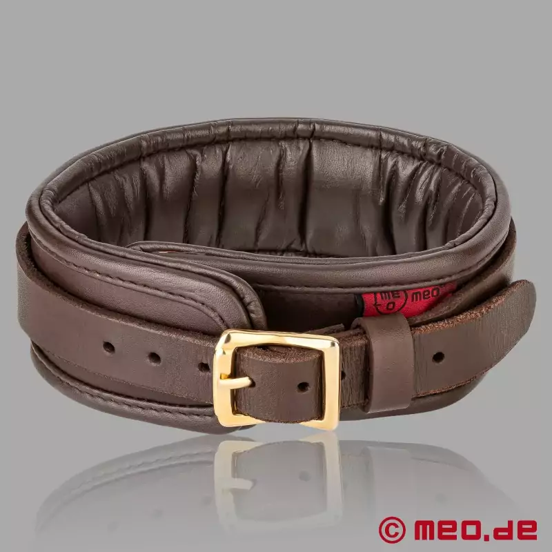 Pokud hledáte obojek BDSM, který kombinuje luxus a funkčnost, pak je ručně vyráběný obojek z kůže BDSM z kolekce Bohème od MEO® perfektní volbou. Tento obojek BDSM v barvě moka kombinuje nádherně hladkou a pružnou hovězí kůži s měkkou telecí kůží, takže je jeho nošení během BDSM seance obzvlášť pohodlné.