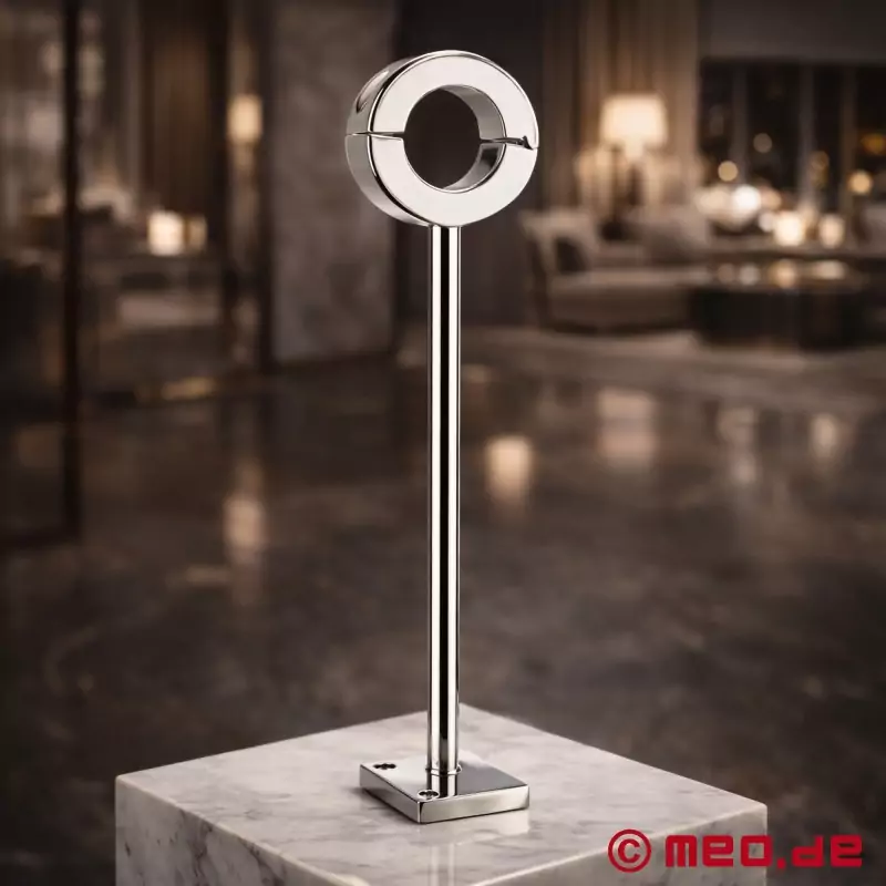 Balls_Lockdown™ je vyroben z pevné, vysoce kvalitní nerezové oceli a nabízí nejen maximální bezpečnost a spolehlivost, ale také estetický vzhled, který dokonale doplní každé BDSM. Montážní tyč o délce 17 cm zajišťuje dostatečný odstup od stěny nebo podlahy a zvyšuje psychologický apel absolutní bezbrannosti.