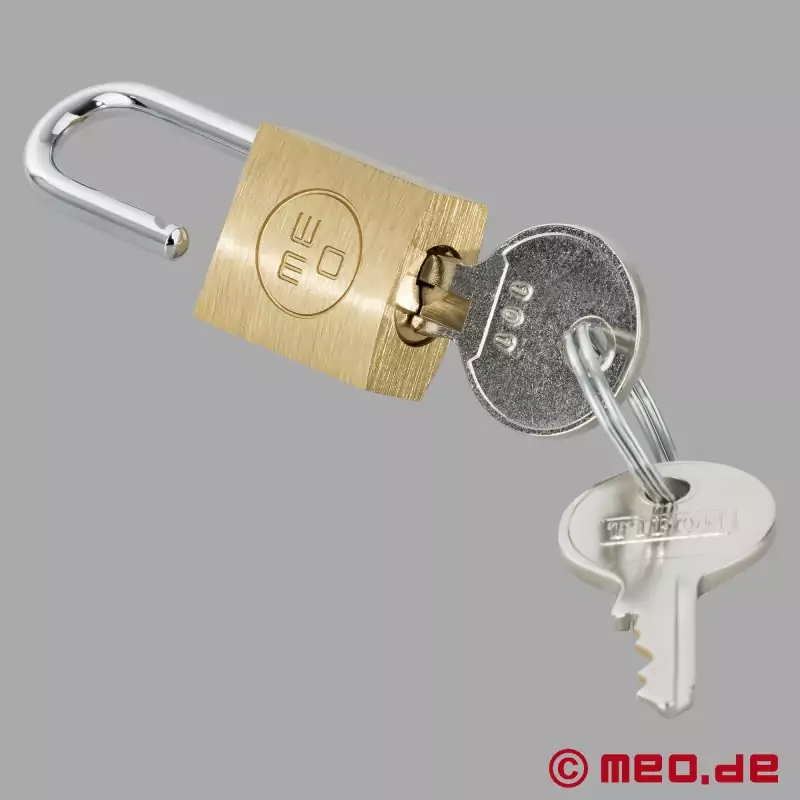 Malý visací zámek MEO® se stejným klíčem zabraňuje chaosu v klíčích, protože stejným klíčem lze otevřít a zavřít libovolný počet visacích zámků. To znamená, že lze současně zajistit několik uzamykatelných bondage doplňků, jako jsou pouta na ruce, kotníkové pouta, BDSM obojek nebo pás cudnosti - bez potřeby několika klíčů.