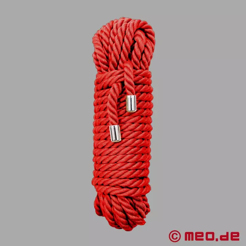 Toto vysoce kvalitní bondážní lano vám umožní prožívat vaše bondage fantazie s partnerem bez omezení. Krásné bondage lano je vhodné jak pro pouto, tak pro profesionály v bondage, kteří chtějí realizovat umělecké techniky bondage. Lano s elegantním vzhledem je odolné proti roztržení a trvanlivé, ale na kůži je velmi příjemné. Neřeže nepříjemně - ani při delších sezeních! Oba konce lana jsou uzavřeny koncovkami, které zvyšují odolnost bondage lana a zabraňují jeho roztřepení.