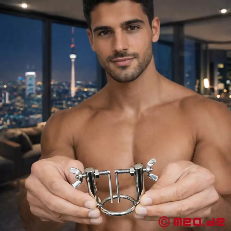 Just place it inside of the urethra and turn the knobs to widen. Each side has its own knob so you can adjust as you see fit. Get that area nice and wide for jewelry, plugs, or other devious decisions you have in store.