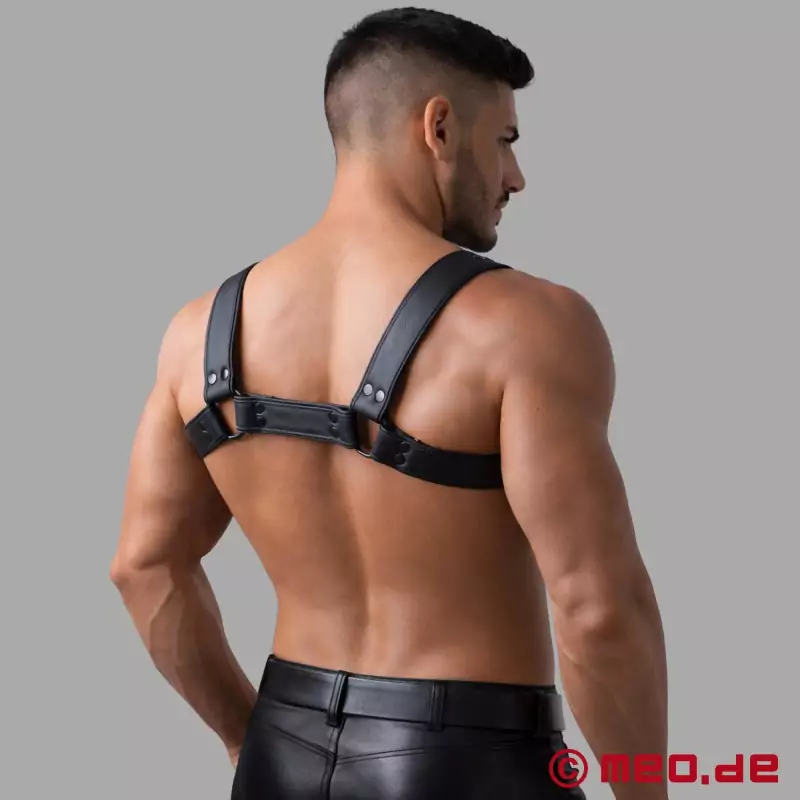 Anatomicky dokonale tvarovaný a se spoustou možností nastavení vám vždy perfektně padne a předvede vaši horní část těla v té nejlepší kvalitě. Měkké, vysoce kvalitní kožené řemínky v kombinaci s elegantními černými kovovými částmi působí na vaší kůži naprosto fantasticky. S tímto postrojem budete zaručeně středem pozornosti, tak popusťte uzdu své fantazii!