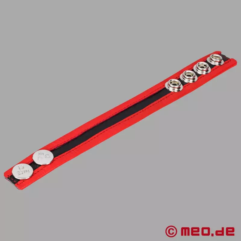 Pohodlně nastavitelný, klasický design, nekomplikovaná manipulace. Tento černo-červený erekční kroužek díky zapínání na patentky vždy perfektně padne a lze jej přesně nastavit na požadovanou velikost.
