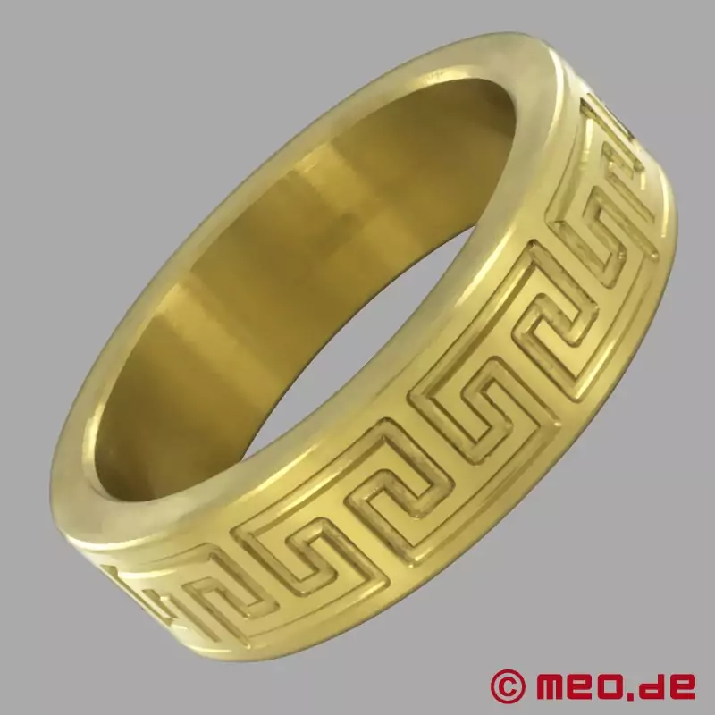 Abyste se i vy mohli cítit jako řečtí sexuální bojovníci, je každý jednotlivý Cock Ring ručně vyráběn zkušenými designéry šperků a jeho povrchová úprava je naprosto bezchybná. Vnitřní hrany tohoto Cock Ringu jsou zaoblené a vysoce leštěné, aby vám zaručily obzvlášť pohodlné nošení a mimořádně silnou erekci. Obzvláště elegantní vzor řeckého klíče se táhne přes celý prsten a zdůrazňuje vaši silnou mužnost.