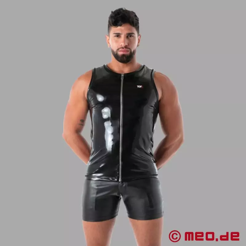 SecondSkin™ černé latexové Zip Tank Top - latexové oblečení z Paříže