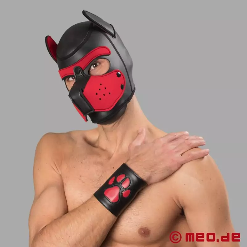 S černo-červenou maskou pro psy od Bad Puppy vyšlete jasný signál: dominance, energie a hravost. Tato maska křičí akcí na čtyřech tlapkách a se zdviženým ocasem. Měkká, elastická neoprenová maska pro psy dokonale obepíná hlavu bez nutnosti otravných zipů nebo tkaniček na zadní straně. Je ideální pro každého, kdo bere svou roli při Human Pup Play vážně.