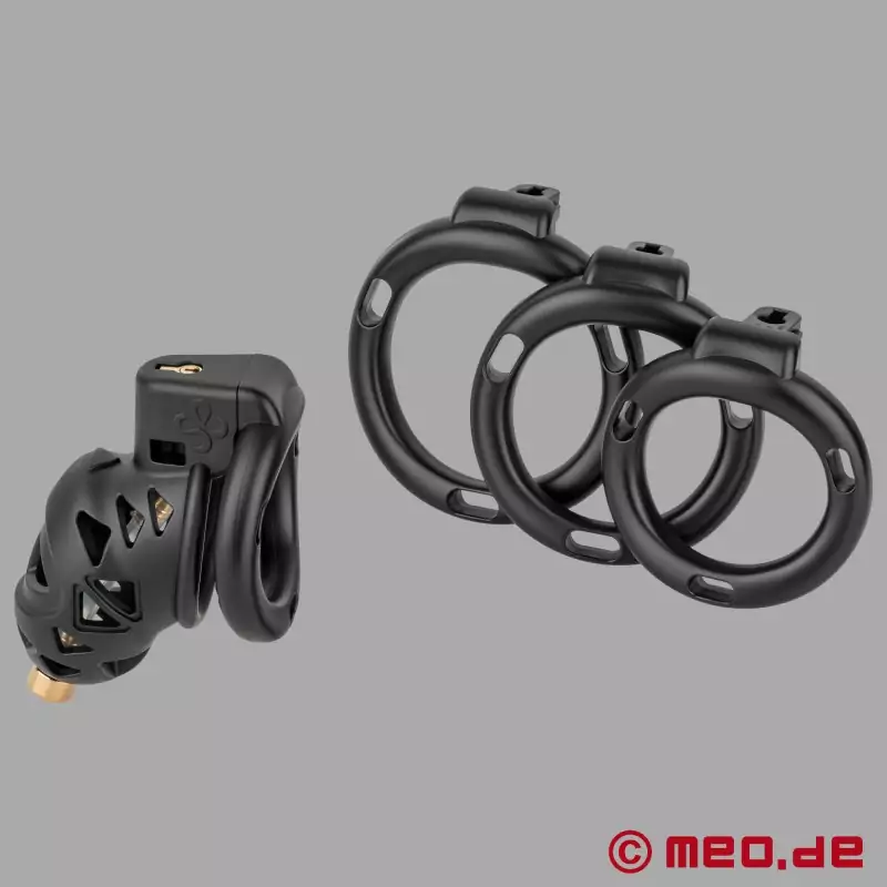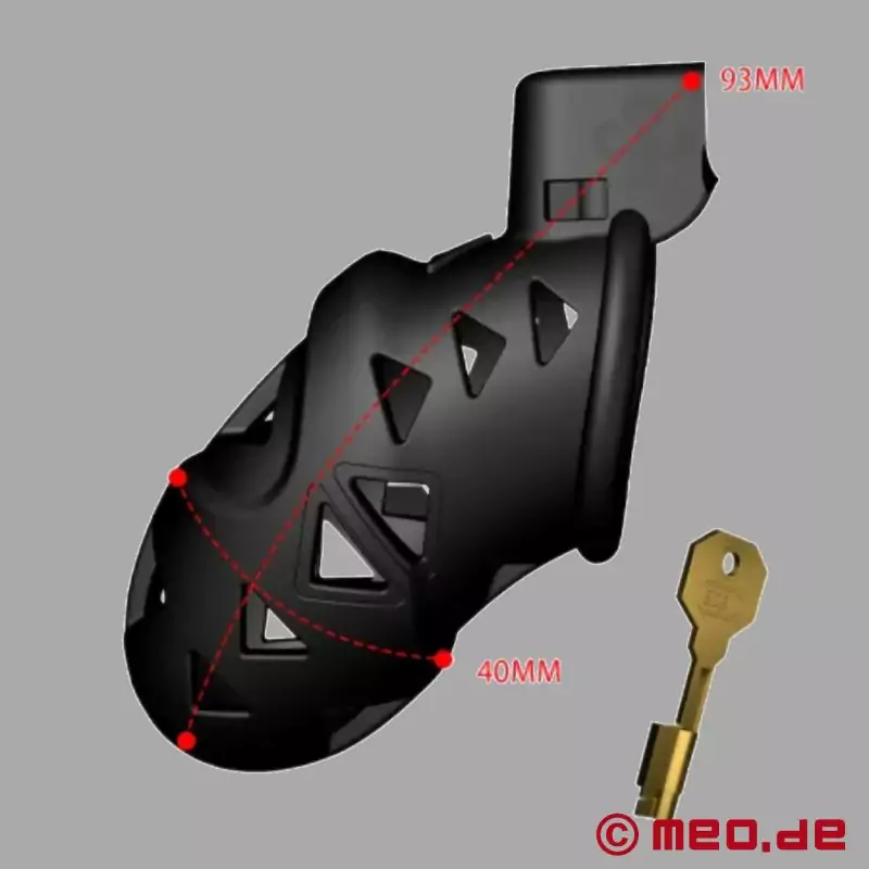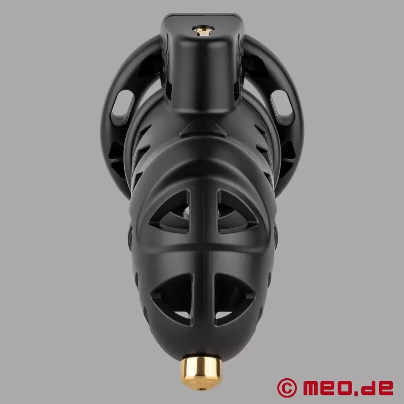 NoPacha® BlackCenturion™ by MEO® je moderní klec cudnosti, která kombinuje bezpečnou cudnost, vysoký komfort nošení a luxusní design. Díky lehkému materiálu ABS, který je šetrný k pokožce, ergonomickému tvaru a integrovaným větracím otvorům je tato klec cudnosti mimořádně pohodlná při nošení, a to i po delší dobu.