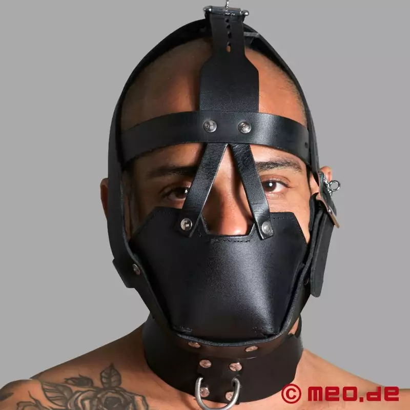 Maximální kontrola, nezaměnitelné omezení a nekompromisní vzhled. MEO® SlaveHarness™ je uzamykatelný postroj na hlavu s náhubkem, který zviditelňuje a hmatatelně omezuje podřízení a bezpečně uzavírá hlavu. Pět uzamykatelných popruhů postroj bezpečně připevní k hlavě a lze jej nastavit tak, aby vyhovoval mnoha velikostem hlavy. Náhubek těsně obepíná čelist, uzavírá ústa a výrazně omezuje verbální komunikaci - ideální pro hraní rolí, při kterém řeč těla, dech a přítomnost udávají tón.