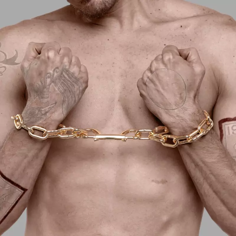 Představte si luxusní lesk zlata v kombinaci se syrovou estetikou pout na ruce. Naše zlatá pouta na ruce, navržená v Itálii, jsou víc než jen BDSM doplněk - jsou působivým prohlášením.