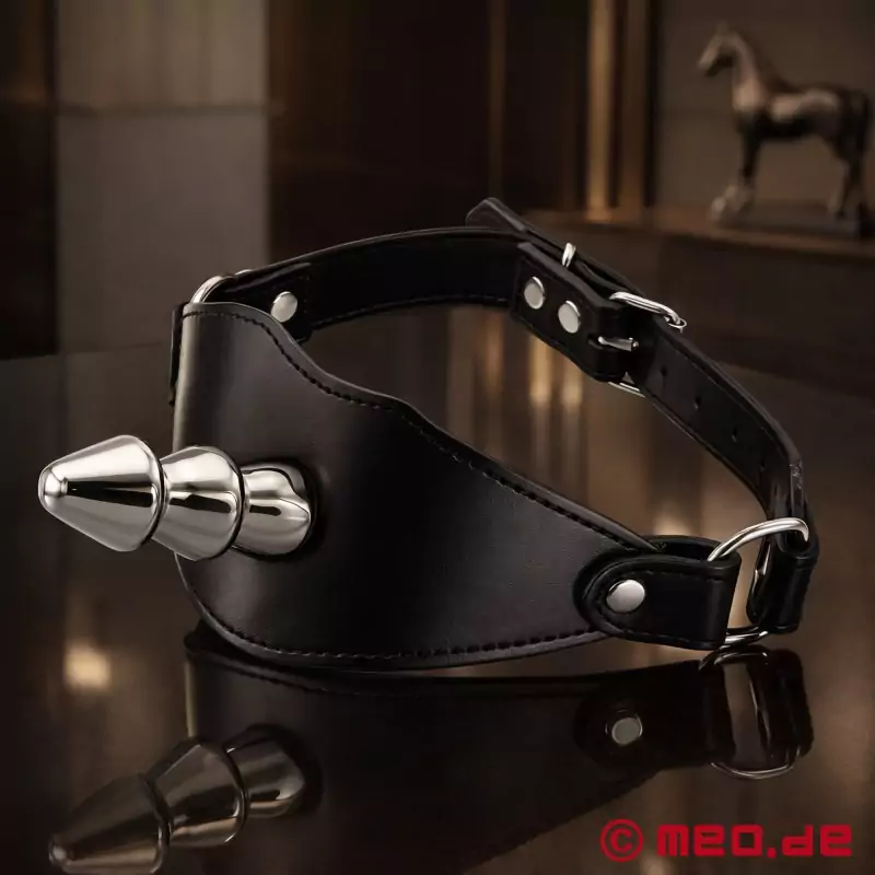 Roubík zajišťuje, že se drzí otroci uplatní orálně, místo aby pána nebo paní obtěžovali odmlouváním. Vnitřní kuličkový roubík je šetrný k zubům a v ústech je příjemný. S adaptérem Vac-U-Lock na přední straně ústní masky lze na vnější stranu připojit jakékoli dildo Vac-U-Lock od Doc Johnson nebo jakékoli dildo Hunglock od MEO®. Jakmile je dildo připojeno, může Sub uspokojovat svého dominantního partnera análně nebo vaginálně.