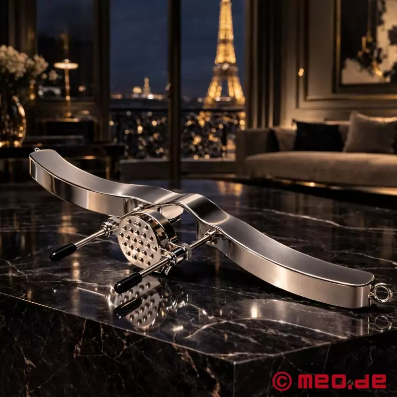 S Ultimate Humbler od MEO® nejenže dostanete každého submisivního muže na kolena - vy ho tam také udržíte. Tento BDSM doplněk 4 v 1 kombinuje fixaci varlat, natahovač varlat a tlak v elegantním designu z leštěného hliníku. Pohyby bez dovolení? Nemožné. Varlata jsou bezpečně fixována mezi stehny a šourek lze plynule roztahovat - až o 120 mm. Volitelné hroty na přítlačné desce navíc zajišťují intenzivní zážitky z CBT. Ať už samostatně, nebo v kombinaci s dalšími BDSM hračkami: Pro všechny, kdo to s dominancí myslí vážně: