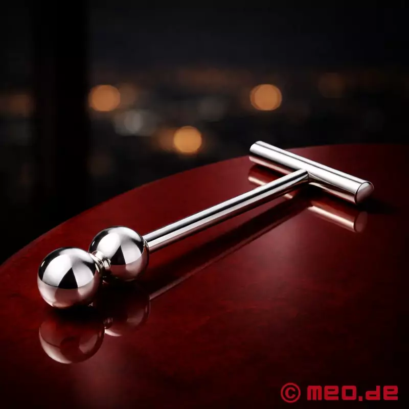 Toto dildo s rukojetí je luxusní erotická hračka, která zaujme šikovnou kombinací designu, funkce a materiálu. Je vyrobeno z leštěné nerezové oceli a má hladký, pružný povrch, díky němuž je zavádění potěšením. Materiál je optimálně šetrný k pokožce, vhodný pro alergiky a extrémně odolný. Robustní rukojeť umožňuje pohodlné používání a vysoce cílenou stimulaci.