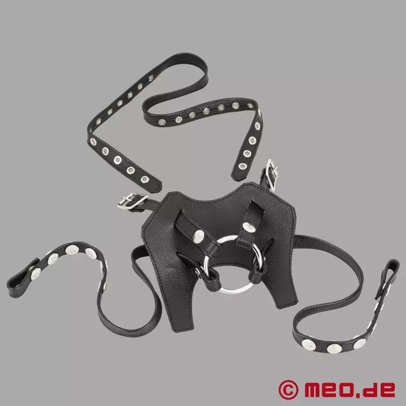 The harness was well made of durable but soft leather with lots of adjustment on the waist and legs. It positioned and controlled the dildo well and delivered what the wife wanted/needed.