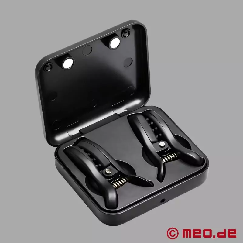 Výkonné vibrace, silná upínací síla na bradavky a praktické nabíjení svorky na bradavky v nabíjecím kufříku.