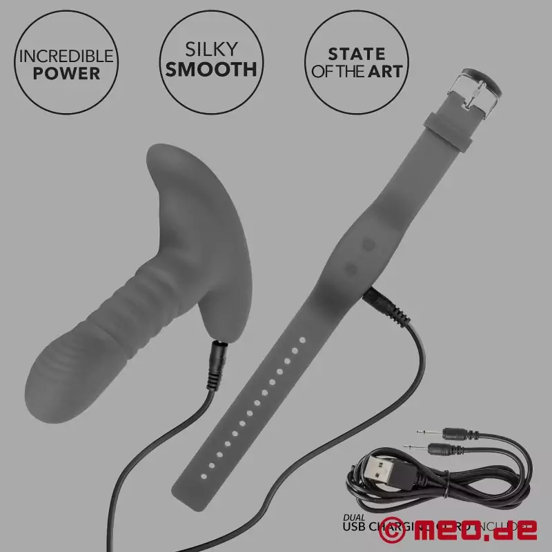 Kompaktní anální kolík se zavádí, zatímco dálkové ovládání leží na zápěstí jako jednoduchý náramek - pro nezasvěcené vypadá jako sledovač aktivity. Uvnitř análního kolíku pracují dva motory, které kombinují dvanáct funkcí Vibration!, pulzací a eskalace se synchronizovanými rázy a rotačním pohybem hřídele. To vytváří hluboký, pulzující pocit, kterého klasické vibrátory nemohou dosáhnout.